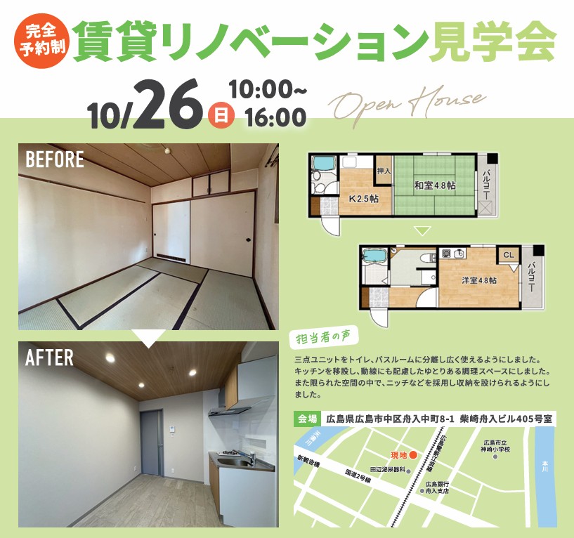 単身物件でリノベーションを行った現場の完成見学会です!